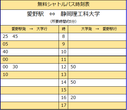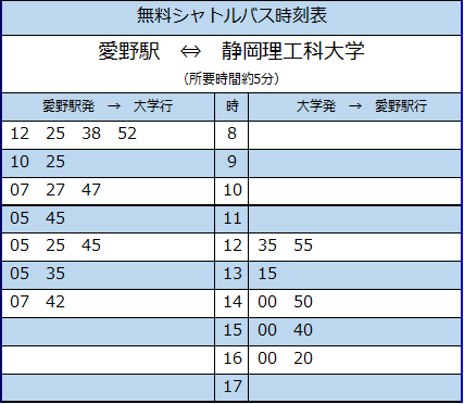 愛野駅南口⇔本学キャンパス(袋井) 所要時間:約5分
